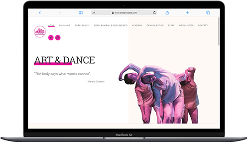 Descrizione: L'associazione Art & Dance A.s.d. aveva bisogno di un sito web istituzionale per promuovere i propri corsi e trasmettere bene la proria immaggine.